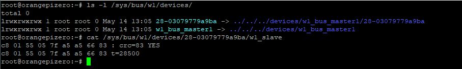 cat /sys/devices/w1_bus_master1/w1_master_slave_count. Jika hasilnya ada angka 1 atau 2, sensor telah berhasil dikenali. Jumlah yang muncul adalah banyaknya jumlah sensor yang terhubung ke board.